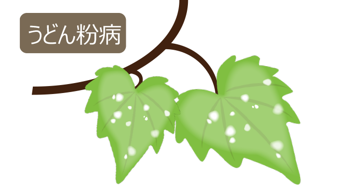 糸状菌が原因の主に空気伝染性の病気です。葉の表面にうどん粉を振りかけたような白いカビが発生します。株全体がカビに覆われ生育が悪化し、果実のがくに発生すると商品価値が著しく損なわれます。
