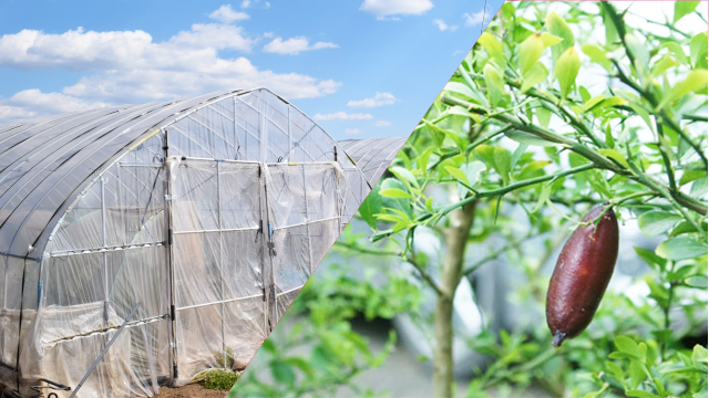 フィンガーライムは樹高2m~2.5mと小柄ですが、十分な収量が期待できるため、鉢植えやハウス栽培にも適しています。苗の植え付けから実がなるまでの年数は3年~6年ほどで、温暖な地域では露地でも栽培できます。ただし耐寒性は-5℃程度が限界で、霜に弱い点には注意が必要です。安定した栽培には、施設環境による周年管理が理想的です。