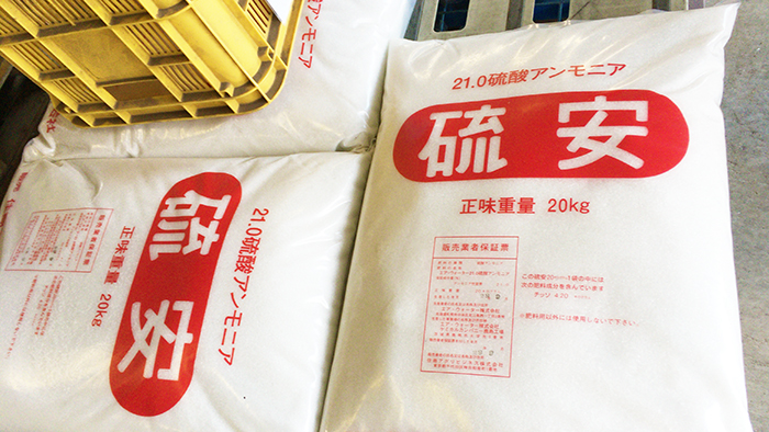 硫酸根が気になる場合は事前に炭酸カルシウムのような中和資材を用いるか、硫安の代わりに即効性の窒素肥料で生理的中性肥料の尿素を使うのも1つの手です。