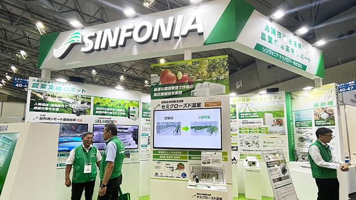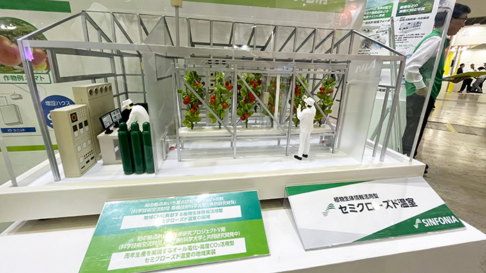 シンフォニアテクノロジー株式会社のブースでは「セミクローズド温室」のジオラマが展示されていました。