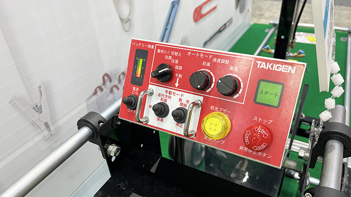 散布のタイミングは「往路・復路・往復」から選ぶことができ、走行スピードもつまみで簡単に調整できるため、誰でも扱いやすい仕様です。